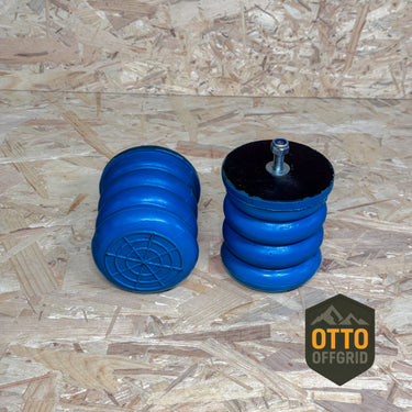 The bump stops replace the factory-installed buffers. They are longer than the original buffers.